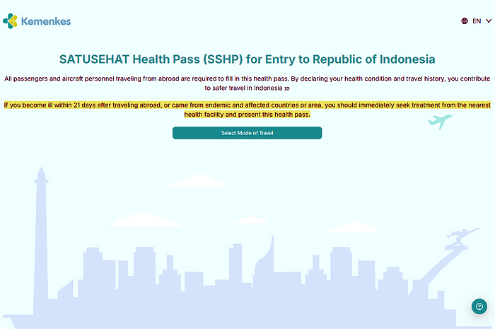 헬스패스 신청 사이트: https://sshp.kemkes.go.id/