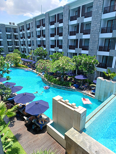 밥 다 먹고 객실로 돌아와서 수영장을 사진에 담아봤습니다