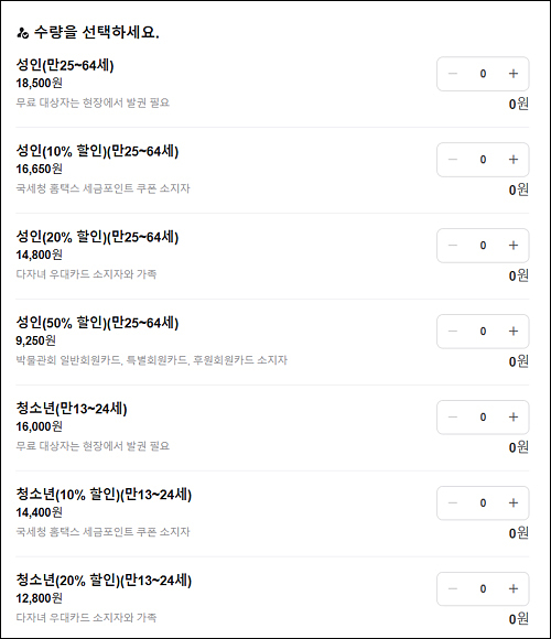 성인요금은 18,600원인데 국세청 홈텍스 세금포인트 쿠폰을 소지하면 10%가 힐인된다고 해서