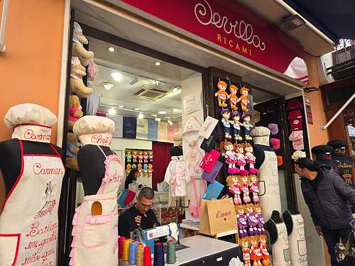 원하는 글씨를 재봉틀로 바로 새겨주는 즉석 재봉틀 가게