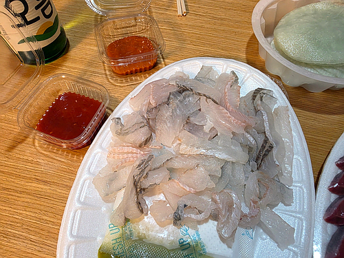 방어회(11,800원)와 도다리 세꼬시(15,800원)를 샀어요..다른 것까지 총 37,200원 썼습니다
