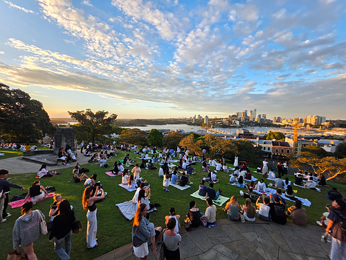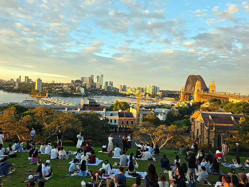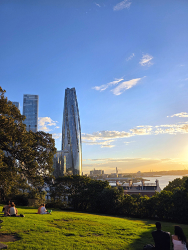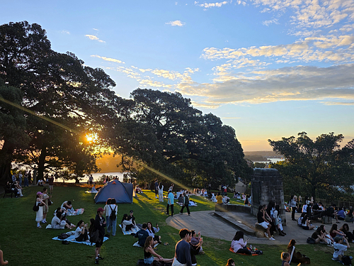일몰 구경하기 좋은 시드니 천문대에 왔어요..잔디밭이나 벤차에 앉아 하버 브릿지와