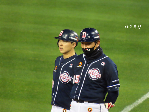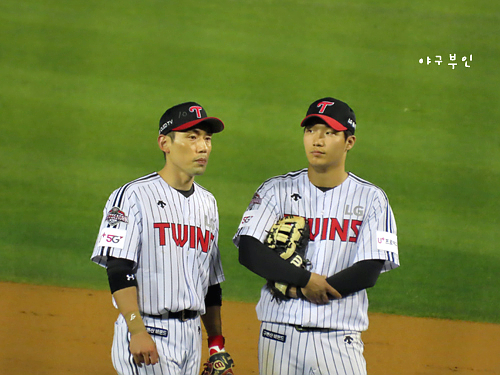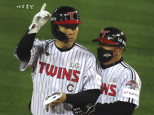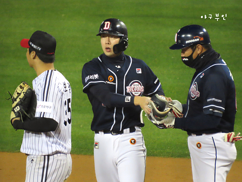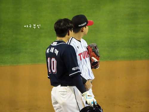 6회 말, 안타치고 나간 채은성 선수..양석환 선수와 얘기 중..^^