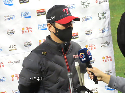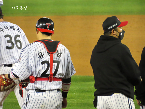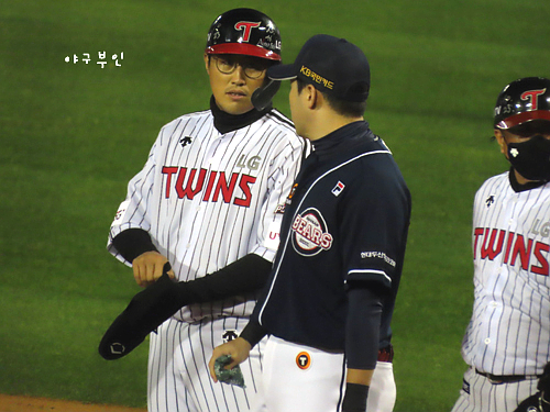 김태형 감독의 퇴장을 요구하는 류지현 감독..수아레즈 투수의 어깨는 계속 식어가는 중