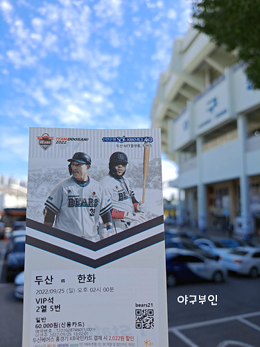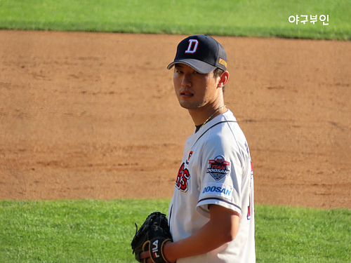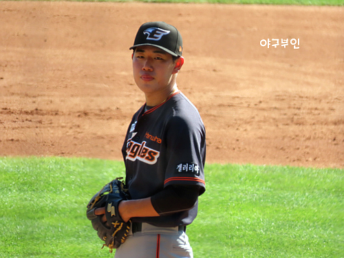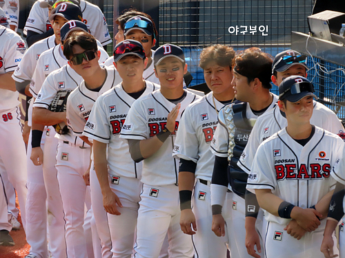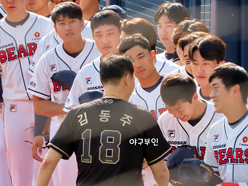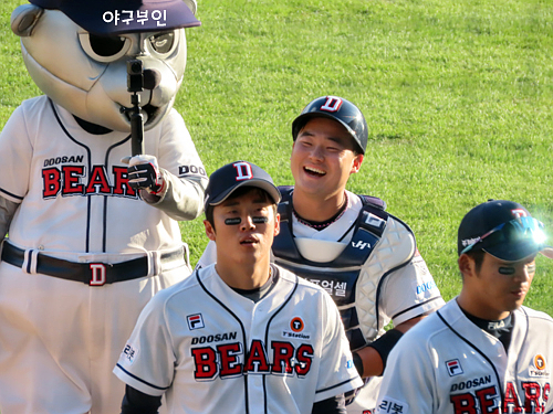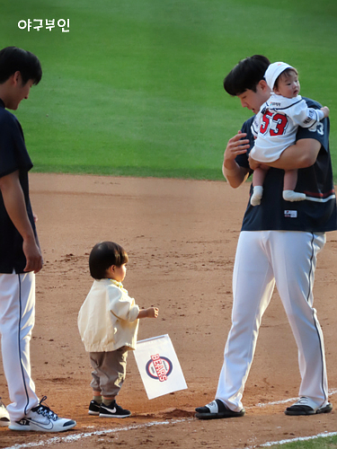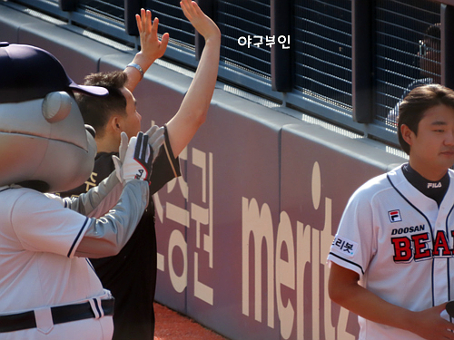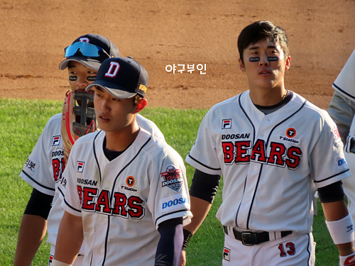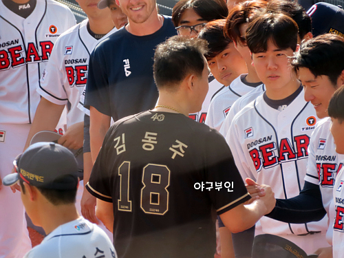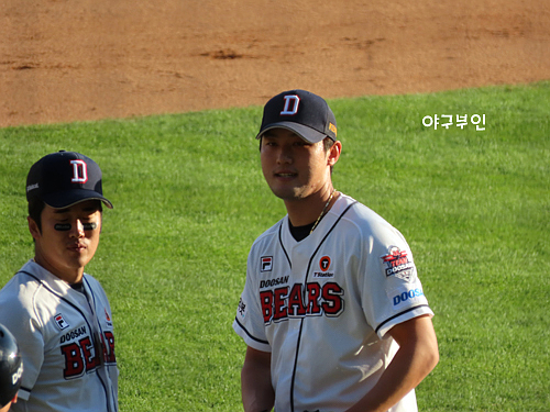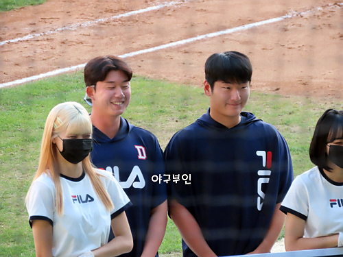 오늘 경기 선발투수는 김동주 선수의 고등학교 후배인 곽빈 투수