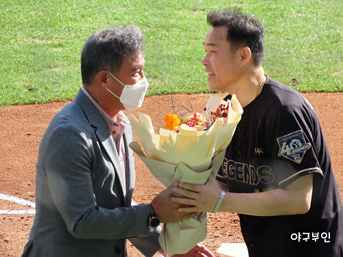 떠났던 '두목곰' 김동주 선수가 한국프로야구 40주년을 기념하여 선정한 'KBO 레전드 40인'에