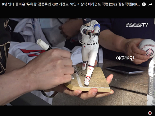 베어스포티비 시상식 영상에 나온 내 손과 내 (두목곰) 피규어..캡쳐해서 박제용으로 올림..ㅋ