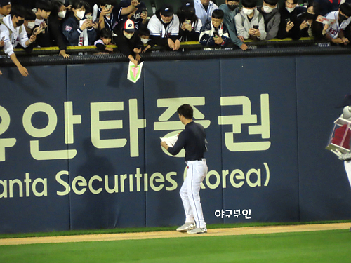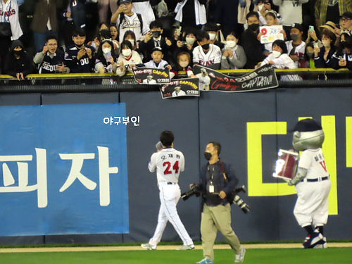 그라운드를 한바퀴 돌면서 팬들에게 인사를 하려합니다