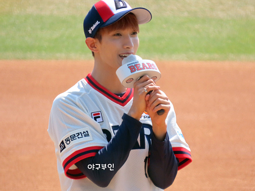 멤버이지만 유명세가 대단하다는..세븐틴의 멤버 '도겸'이 시구를 했거든요..이 시구자는 0 대 0의