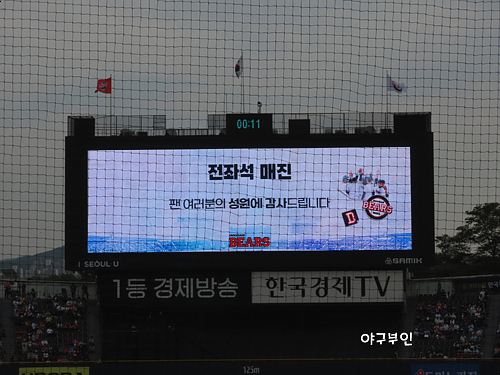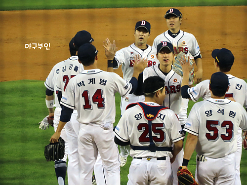 불과했지만 효율적이었다는 것도 크게 작용을 했구요..오늘 경기로 5할의 승률을 기록한 두산
