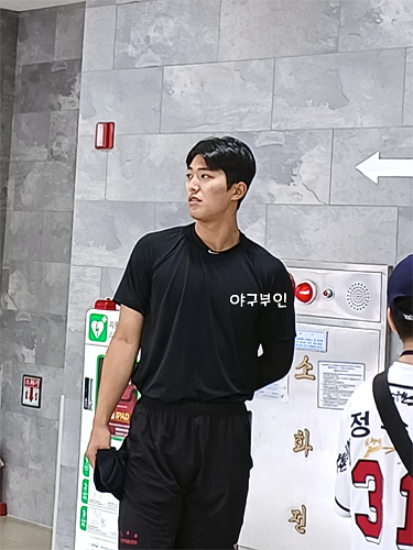 이의리 투수..최원준 투수와 얘기를 나누고 있었어요