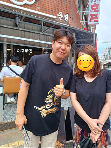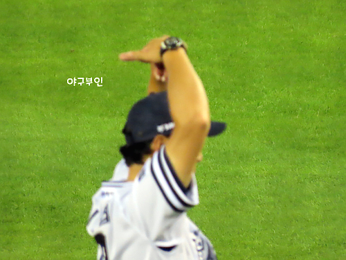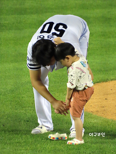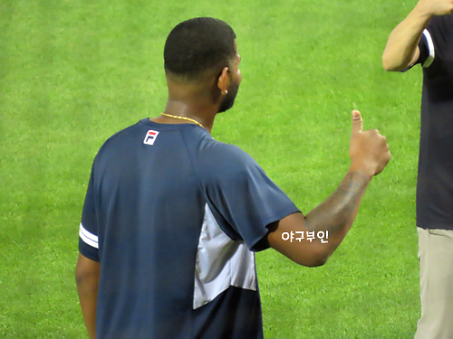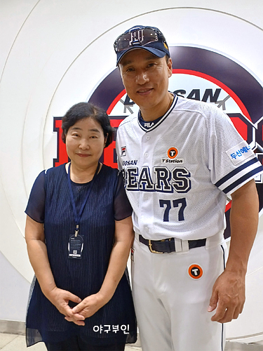 야구장에 갔더니 마침 이승엽 감독이 로비에 나왔더군요