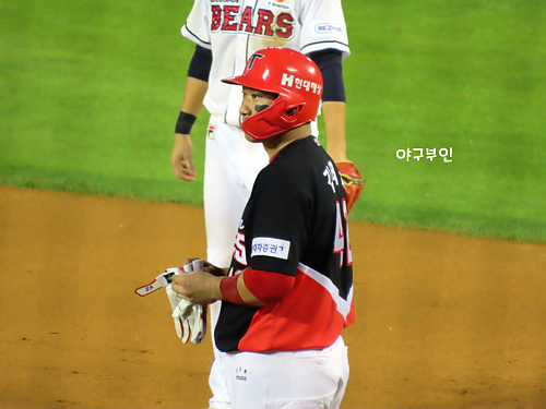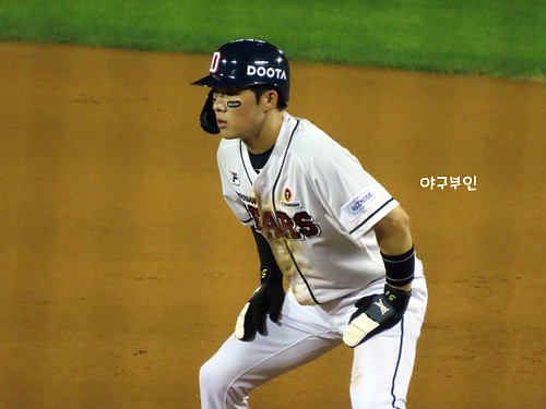 첫 타석부터 안타를 친 김재호 선수