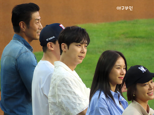 경기 전 승리기원시구에 이덕화 배우를 비롯 이름 있는 연예인 총 출동