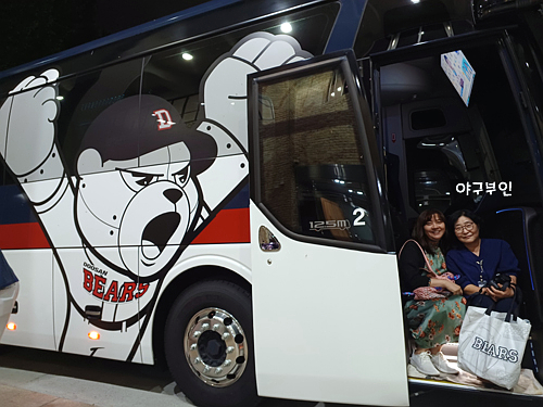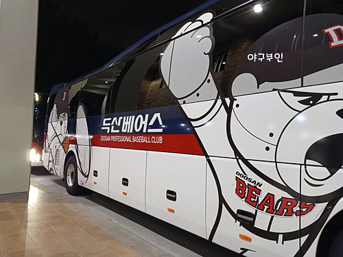 경기를 끝내고 광주로 이동하는 베어스..마침 버스가 있어서 사진 찍기