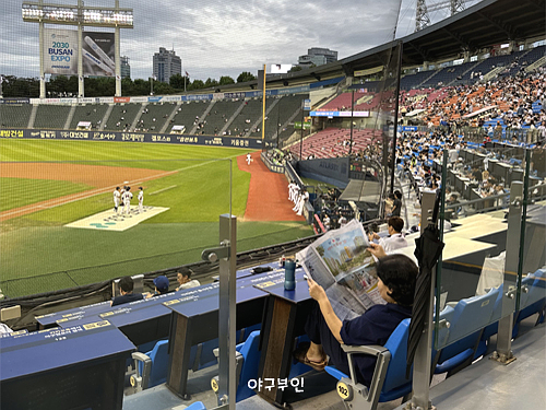 신문 읽는 여자..^^ (야구장 지인이 신기하다고 찍어서 보내준 거..ㅋㅋ)