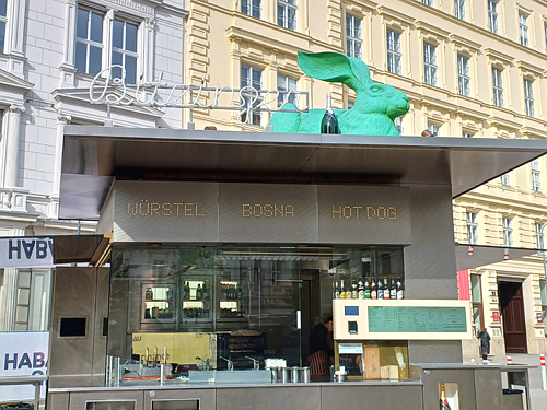 암튼, 프라하로 가기 전..알베르티나 미술관 앞에 있는 토끼 핫도그에 가서..핫도그 하나 사고