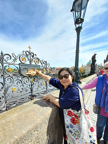 오늘도 별이 다섯 개인 성 요한 네포무크 동상 앞에는 사람이 많네요