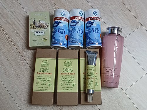 오스트리아에서 구입한 소금과 프라하 백화점에서 구입한 세안팩 그리고 비누와 스킨