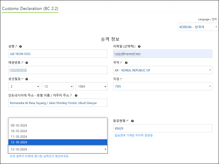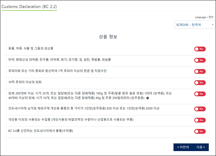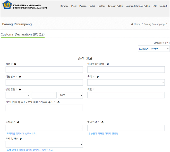 전자세관신고서도 출발 3일 전부터 작성 가능하고 특별한 것은 없습니다 ..사이트 주소: https://ecd.beacukai.go.id/
