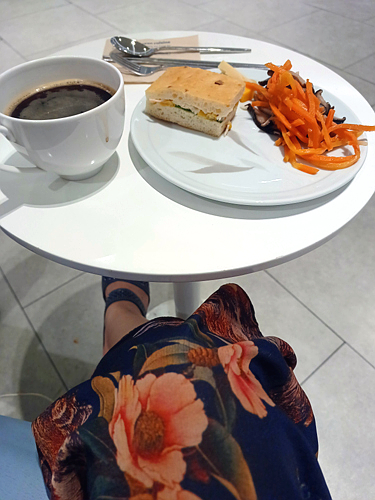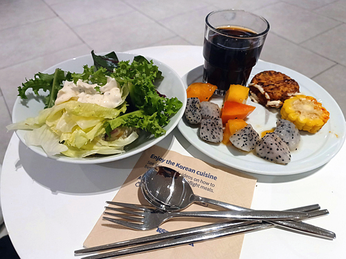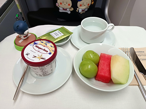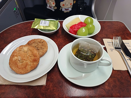 그런데 제가 안 먹는 게 맘에 걸렸는지 승무원이 따로 비스킷과 과일과 차를 주셨어요