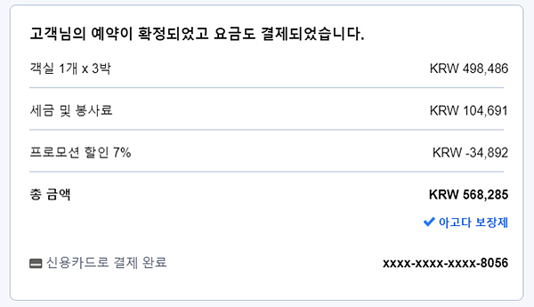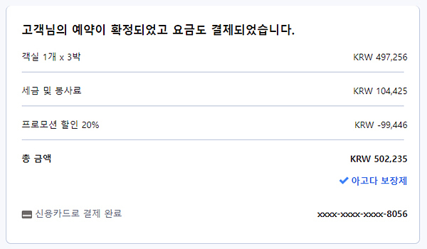 객실이 큼직해서 좋더라구요..3박에 50만원..정확하게 502,235원..넘 괜찮지 않습니까..??