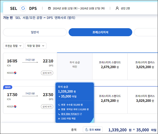 이번 남편과의 발리여행에도 프레스티지석을 발권했는데 잘한 거 같아요..ㅎㅎ