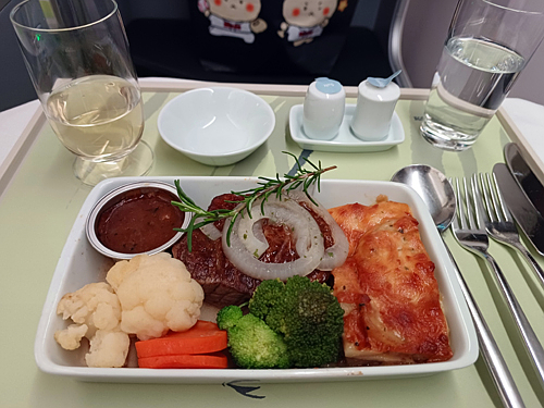 발리까지는 일곱 시간 걸리는데요 식사가 두 번 제공됩니다..한 번은 정찬으로