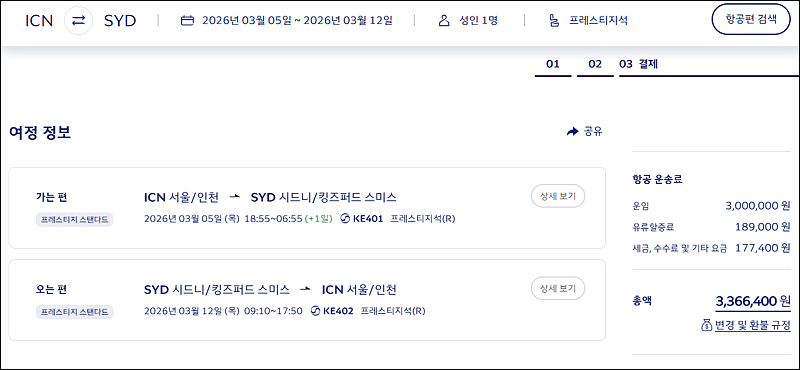 제가 다녀온 것보다..무려 150만원 정도 더 올라있네요..그나마 시드니는 3월 항공료가 다소