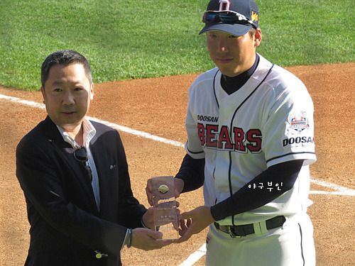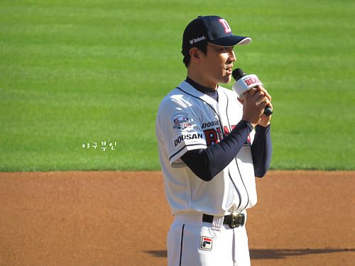 오늘 경기 시구자는 원년부터 베어스 팬인 탤런트 한정수 씨