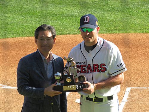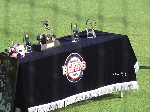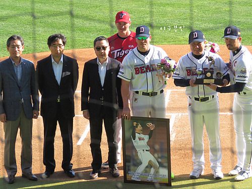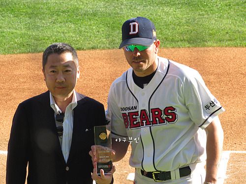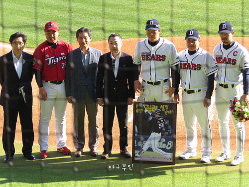 김현수 선수 1,000경기 출장기념 시상식과 마야 선수의 노히트 노런 시상식이 열렸습니다