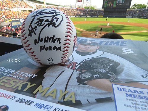 조금 늦긴 했지만 마야 선수의 노히트 노런 사인볼..^^