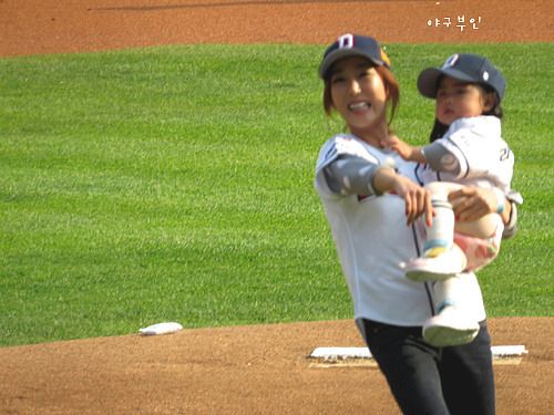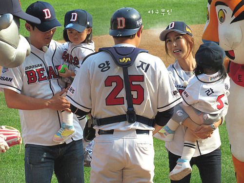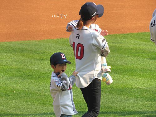 오늘의 시구자로 야구장을 찾은 가수 슈와 그 가족들