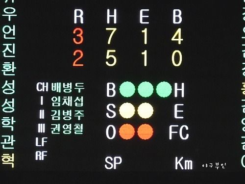 경기가 시작되자마자 이용규 선수에게 수비 실책성 안타를 맞은 것을 제외하고는 딱히 눈에