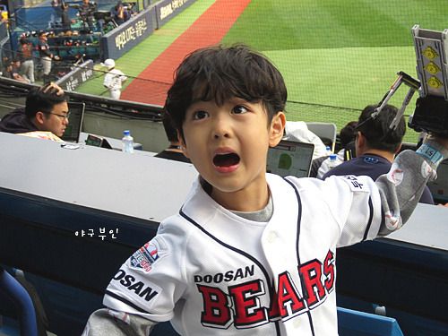 아이들이 셋이나 있고 아무래도 정신이 없어서 야구장을 떠나고 있는 가수 슈..가기 전에