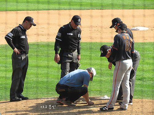 3회 말, 보크를 선언당하자 그것에 항의해 글러브를 던지면서 퇴장을 당한 탈보트 선수