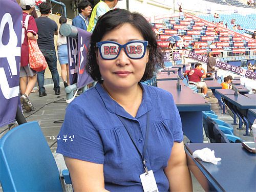 재호 선수가 안타를 치자 좋아하는 시게코 씨