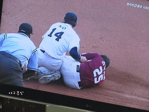 2루타를 쳤으나 아웃이 된 스나이더 선수