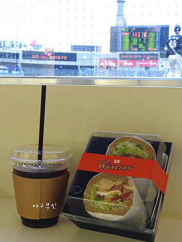인천 행복드림구장 라이브존 지하에 있는 라운지..샌드위치와 음료 두 잔이 제공됩니다