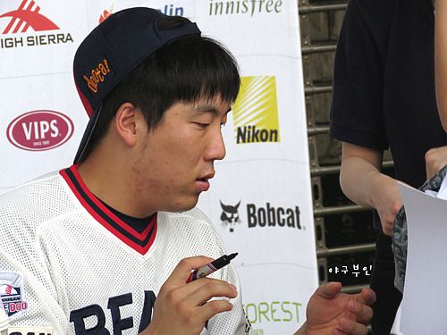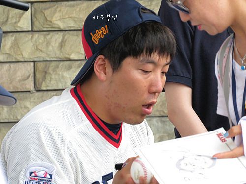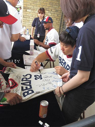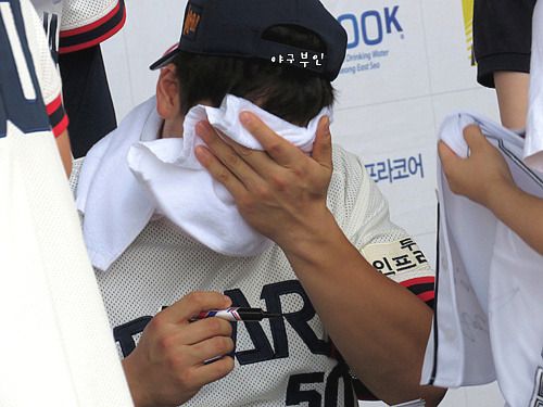 야구하는 것도 덥지만 사인하는 것도 덥네요