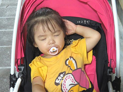 야구장에서도 잘자는 야구선수의 딸내미..ㅋㅋㅋ