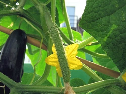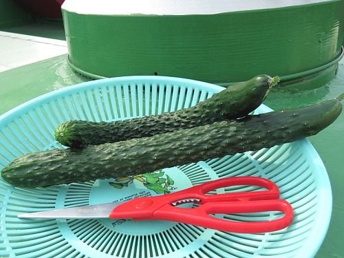 다 자란 굵은 오이와 자라고 있는 얇은 오이..ㅋ