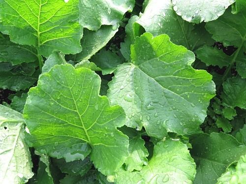물을 머금은 무 이파리