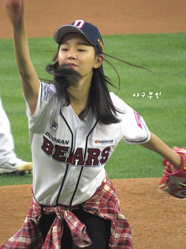 영화배우 신혜선 씨가 오늘의 시구자입니다..이분이 은근 나이가