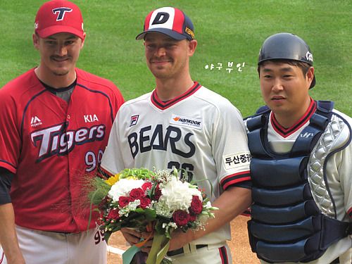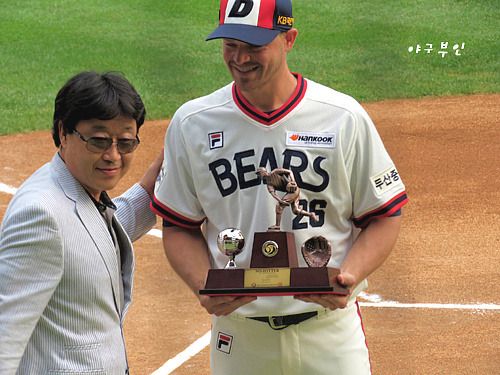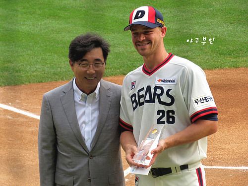 브렛 필 선수가 꽃다발을 건네줍니다..물론 울 구단에서 산 꽃다발..^^