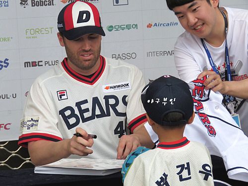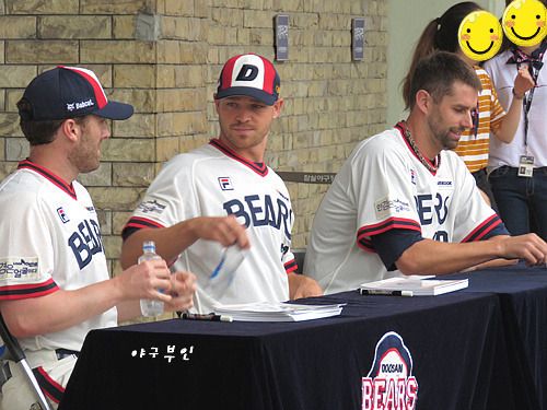 오늘 사인회를 마치고 들어오던 외국인 선수 세 명의 사인을 공 하나에 받았습니다..ㅋㅋㅋ