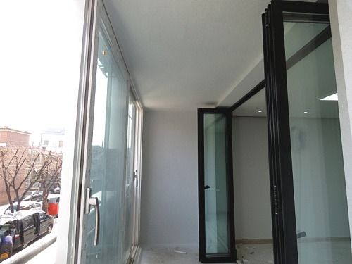거실과 베란다 사이에는 폴딩도어를 시공했습니다..개인적으로 확장하는 것은 싫구요