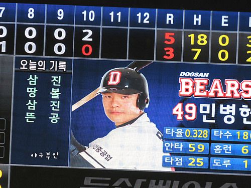 안타는 무려 아홉 개..울 팀 1,2번 타자의 안타는..?? 없..-.-; 집에만 오면 맥을 못 추는 곰탱이
