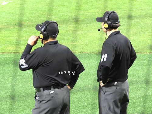 내야땅볼..슬라이딩..아웃..비디오 판독요청..결과 기다리는 중