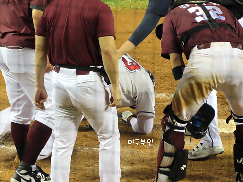 6회 초가 되자마자 사구가 나왔어요..이용규 선수 공 맞음